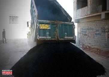 پخش و توزیع آسفالت برای آسفالت اساسی کوچه جنب ایستگاه آتش نشانی شهرک خاوران در حال اجرا است.