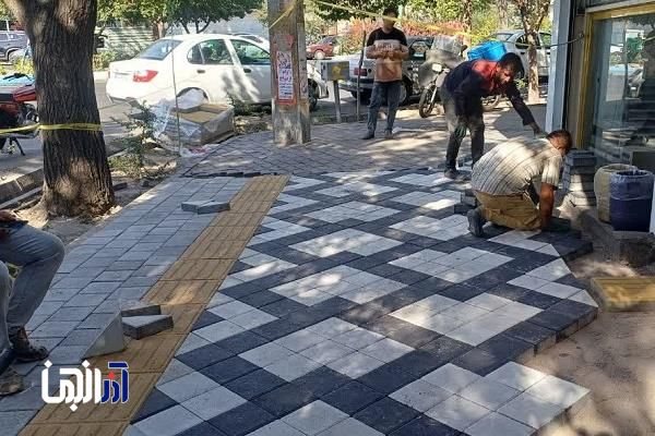 آغاز سنگفرش پیاده رو ها در خیابان فلسطین