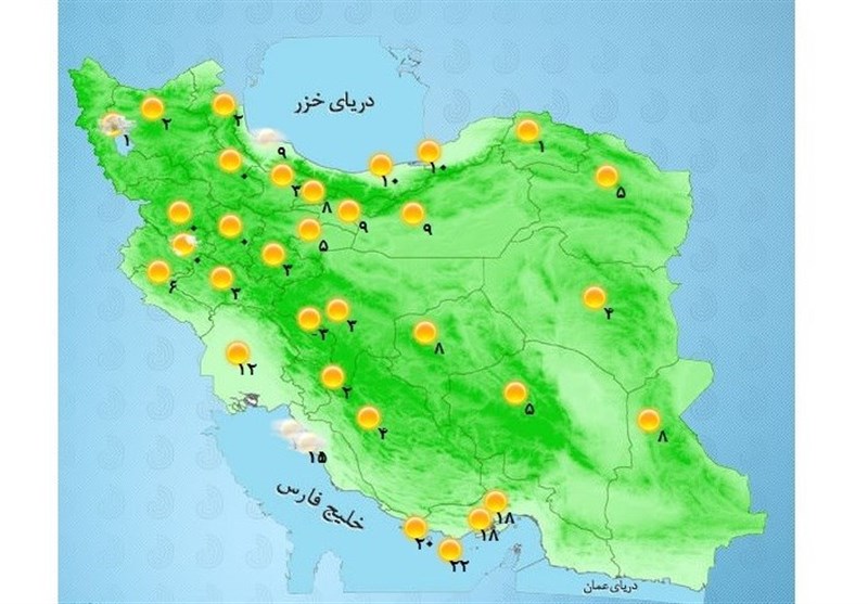 امروز آسمان تهران صاف همراه با غبار محلی، از بعدازظهر کمی ابری همراه با وزش باد است. بیشینه دمای امروز پایتخت به ۱۱ و کمینه دمای آن به یک درجه سانتی گراد بالای صفر خواهد رسید.