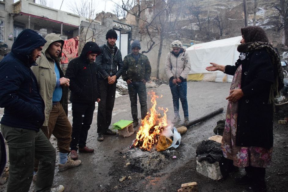 دماغش قرمز شده و دستانش تاول زده؛ برمیگردد و در نگاهی رنجور و غمگین به امین انگوری، سر گروه کمک های مردمی میگوید:«خانههایمان بر اثر زلزله تخریب شده اند، اینجا دمای هوا رفته رفته میرود تا به زیر صفر برسد و اصلا امکان زندگی در چادر برایمان مقدور نیست.»
