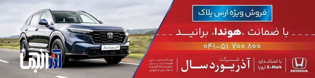 فروش ویژه خودروهای هوندا با پلاک ارس توسط شرکت آذر یورد سال