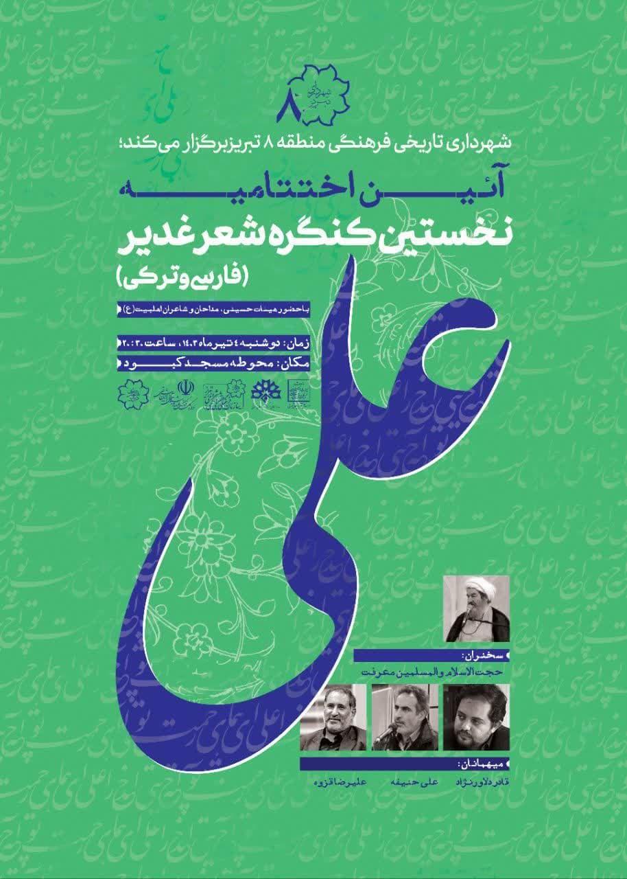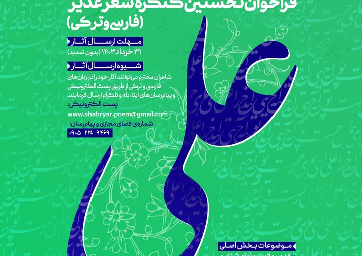 آیین اختتامیه نخستین کنگره شعر غدیر ( ترکی و فارسی ) روز دوشنبه 4 تیر ماه 1403 در فضای باز مسجد کبود تبریز برگزار خواهد شد.