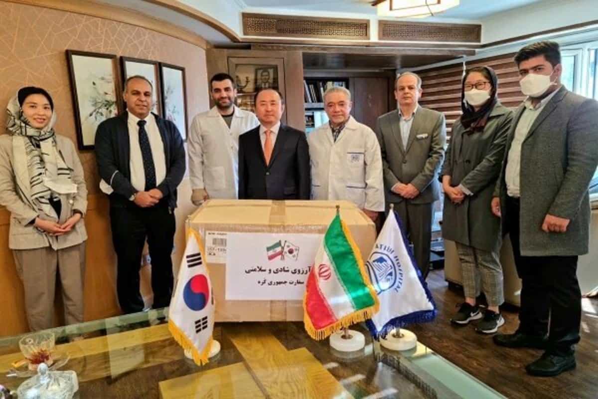 حساب توییتر سفارت کره در پی واکنشهای منفی گسترده به بازدید مقاماتش از بیمارستان خصوصی آتیه در تهران و انتشار تصاویر این دیدار نوشت: «دوستی ایران و کره ۶۰ سال قدمت دارد. کره برای حمایت از ایران در امور پناهندگان افغان به ایران معادل ۲۷ میلیون دلار کمک کرد و همچنین با کمک حدود هشت میلیون از ایران در مبارزه با کووید حمایت نمود که شامل یک میلیون واکسن آسترازنکا، یک میلیون ماسک و کیتهای پیسیآر است». اشاره به این مبالغ تحت عنوان «کمک» اشاره مستقیمتری به انتقادی بود که باعث واکنشهای منفی به خبر اول شده بود.