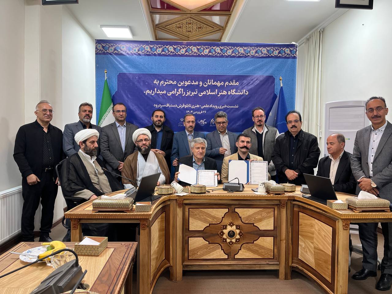 نشست خبری نخستین رویداد علمی هنری تابلو فرش دستباف با حضور هیأت رئیسه دانشگاه هنر اسلامی تبریز، اعضای اتحادیه تابلو فرش دستباف و صنوف همگن سردرود، سلیمانی رئیس اداره فرش در صنعت، معدن و تجارت استان و حجت الاسلام والمسلمین جلیل جلیلی امام جمعه سردرود در دانشگاه هنر اسلامی تبریز برگزار شد.