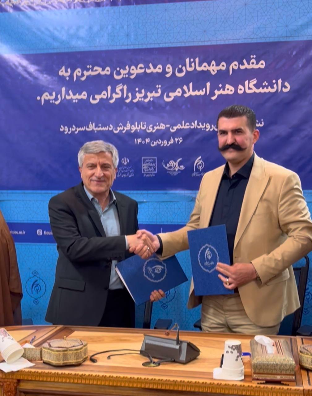 نشست خبری نخستین رویداد علمی هنری تابلو فرش دستباف با حضور هیأت رئیسه دانشگاه هنر اسلامی تبریز، اعضای اتحادیه تابلو فرش دستباف و صنوف همگن سردرود، سلیمانی رئیس اداره فرش در صنعت، معدن و تجارت استان و حجت الاسلام والمسلمین جلیل جلیلی امام جمعه سردرود در دانشگاه هنر اسلامی تبریز برگزار شد.