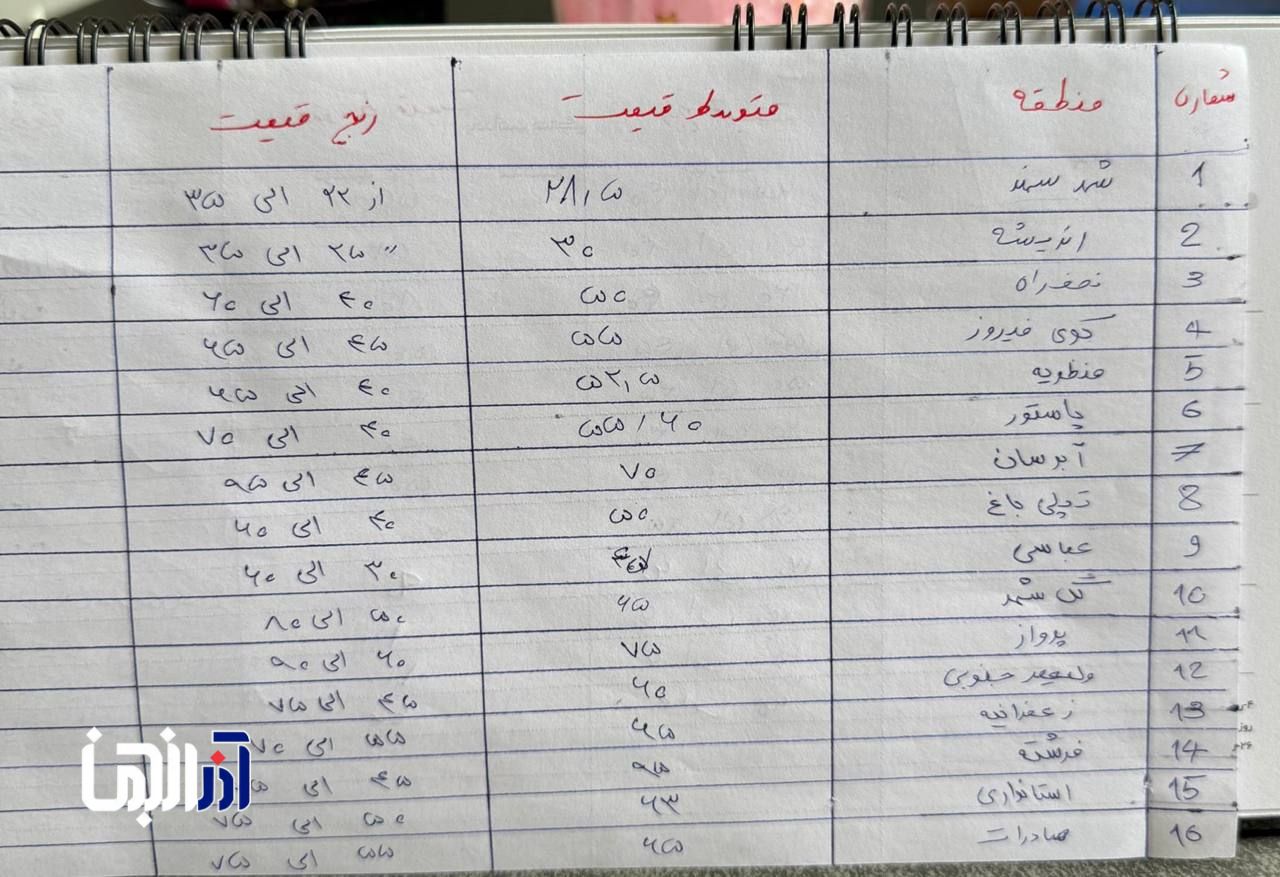 به گزارش آذرانجمن، بر اساس آخرین بررسیها، متوسط قیمت مسکن در مناطق مختلف تبریز در مرداد ماه به شرح زیر است: